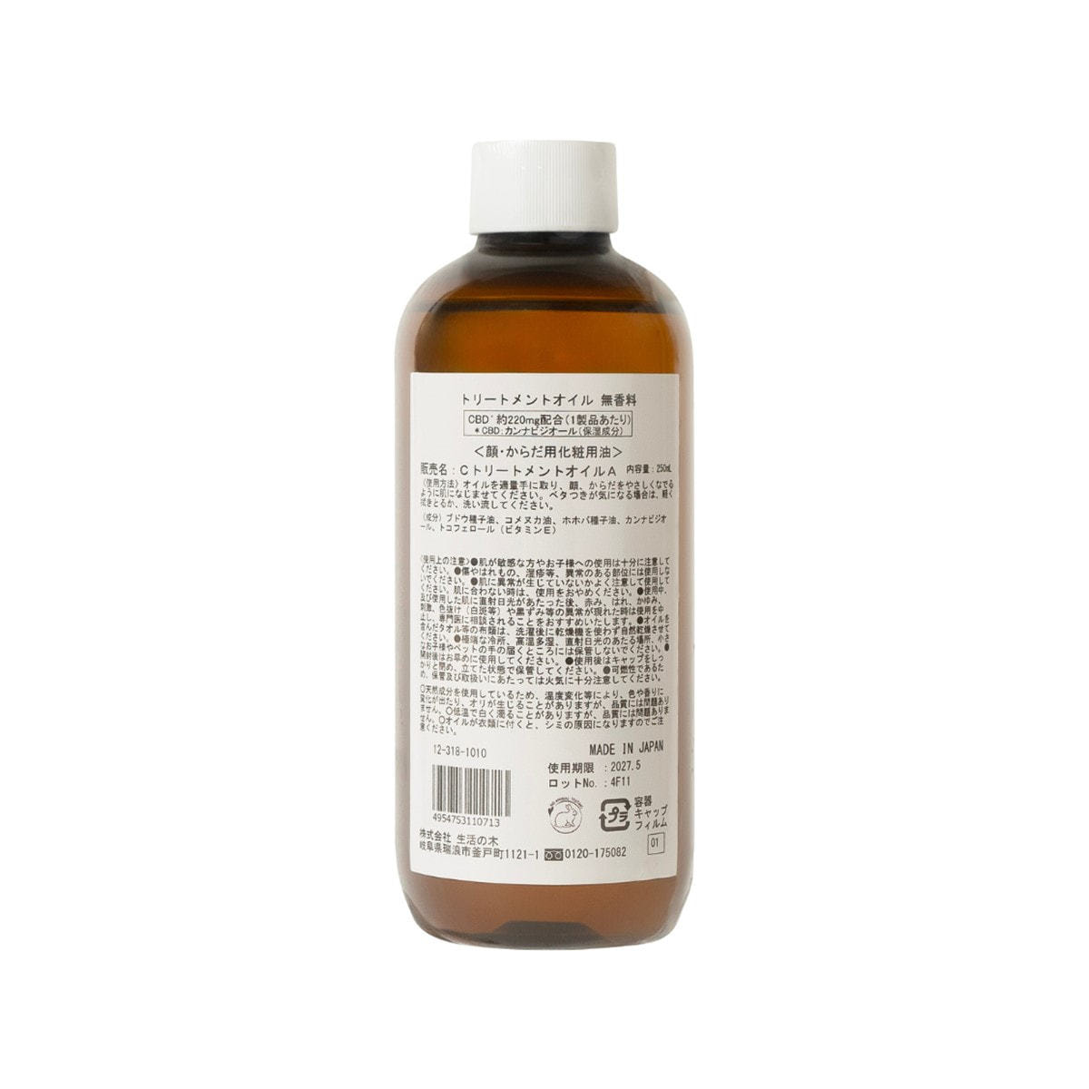 生活の木 フェイス&ボディートリートメントオイル 無香料 CBD配合 250ml