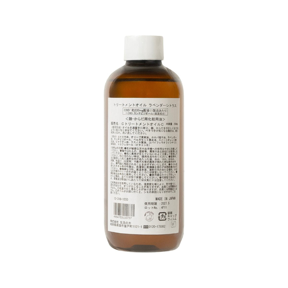 生活の木 フェイス&ボディートリートメントオイル ラベンダーシトラス CBD配合 250ml
